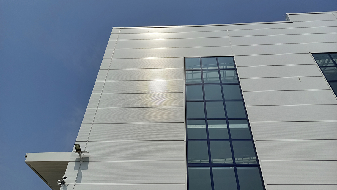 金屬面材表面經過電暈技術處理后,更具光澤質感和耐久性,高品質的外立面效果讓建筑在周圍環境中更加引人注目。