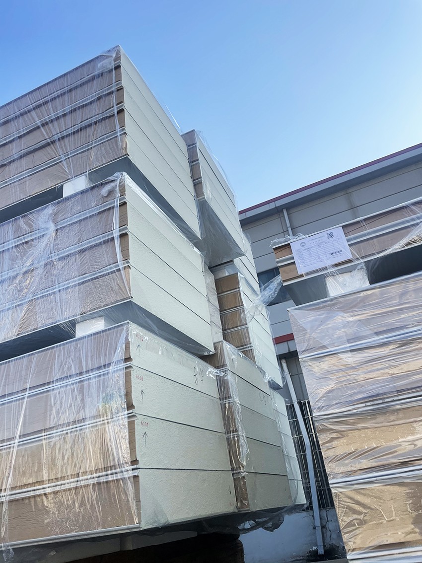 通過彩鋼板、芯材與搭接口的細(xì)節(jié)構(gòu)造工藝,構(gòu)建出堅(jiān)固壁壘,顯著提升板材的強(qiáng)度與剛度,確保其輕松承載設(shè)計(jì)載荷。采用在線預(yù)埋技術(shù),有效避免冷橋現(xiàn)象。