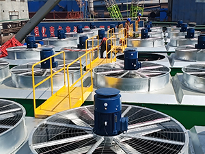 軸流風(fēng)機(jī)是一種氣流方向與風(fēng)機(jī)軸平行的通風(fēng)設(shè)備,廣泛應(yīng)用于冷卻塔,具有效率高、結(jié)構(gòu)緊湊、安裝靈活的特點。工作原理為:氣流沿風(fēng)機(jī)軸向進(jìn)入,經(jīng)旋轉(zhuǎn)葉輪加速后沿軸向排出,形成連續(xù)氣流。軸流風(fēng)機(jī)由葉輪,電機(jī)和導(dǎo)流罩(風(fēng)筒)構(gòu)成。葉輪采用機(jī)翼型,通常為3~12片,材質(zhì)多為鋁合金、玻璃鋼(FRP)或不銹鋼,電機(jī)采用直連型。防護(hù)等級需滿足環(huán)境要求(通常采用IP55防塵防水),風(fēng)筒通常為鍍鋅鋼板或FRP材質(zhì),減少氣流渦流,提高 效率。